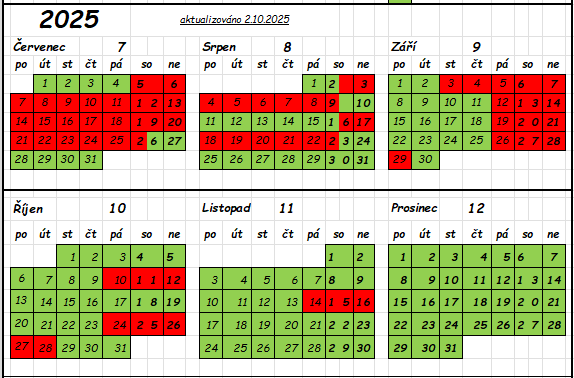 Rezervační systém není interaktivní a Vaši rezervaci do kalendáře vkládáme my, po mailové nebo telefonické domluvě. Po rezervaci prosíme o úhradu zálohy do 4 dnů , čímž je tato oboustranně závazná.